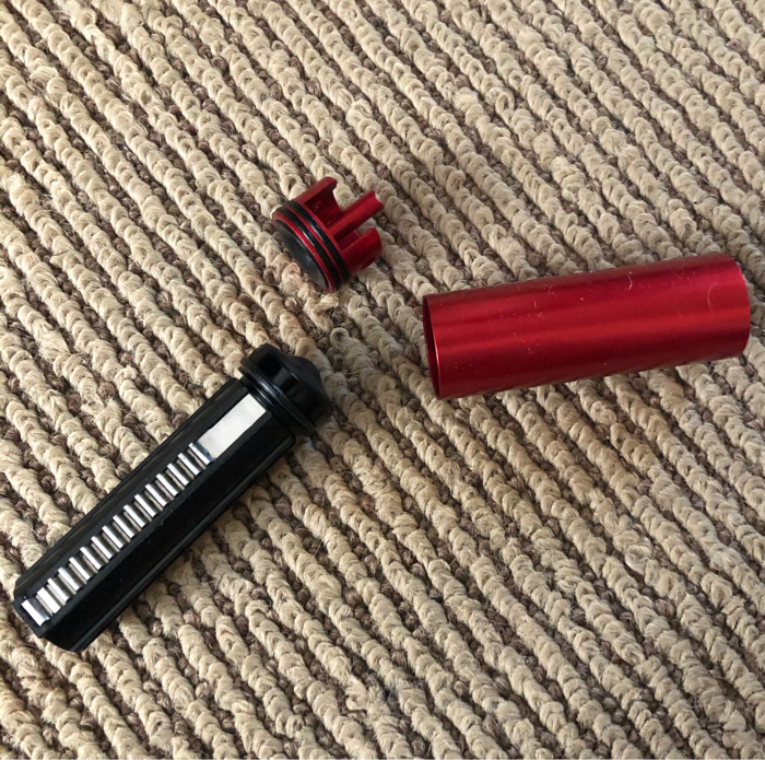 Piston and cylinder, heads included. Full metal teeth and double O-ring. Used for testing and that’s it. Never fielded. Price is shipped.