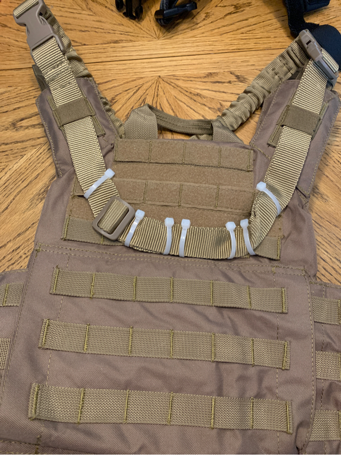 I have a coyote brown chest rig. It has need used but nicely kept. Comes with everything shown in pic. The rig, dump pouch, and sling. I jerry rigged something to have my sling where I wanted it but I can remove the zip ties. Price is cheaper if local/paypal is used