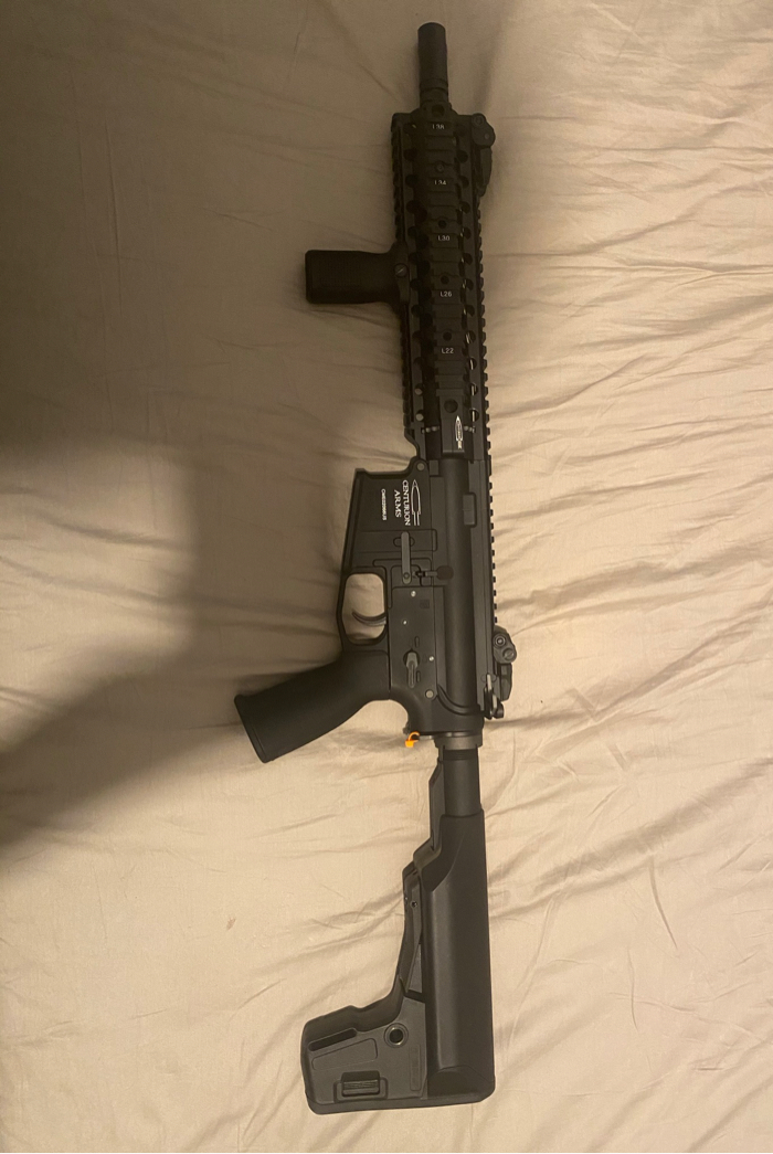 Centurion arms cm4 erg Pts stock Pts grip Pts fore grip 7 Pts 30/120 mid cap ERG mags Extra spring for 400 FPS Used it one game and it’s not my style. Open to trades