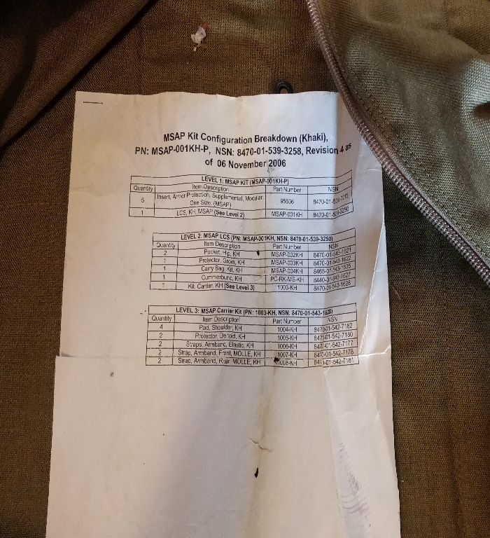 Brand new kit, includes everything pictured including the packing list. Price does not include shipping. I also have Ceradyne MSAP plates available.