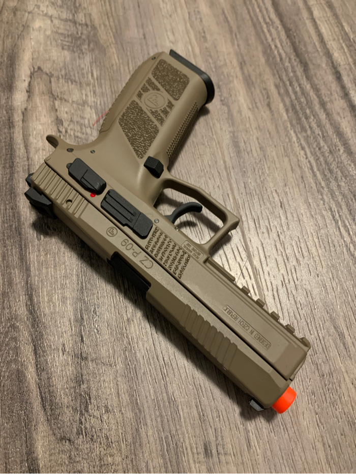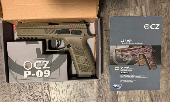 Brand new ASG CZ P-09 Sportsline airsoft pistol with ONE LEAKY GREEN GAS MAG. The gun and mag are both brand new, but the mag leaks from the bottom for some reason.