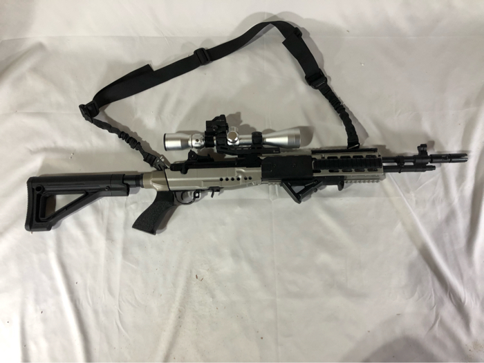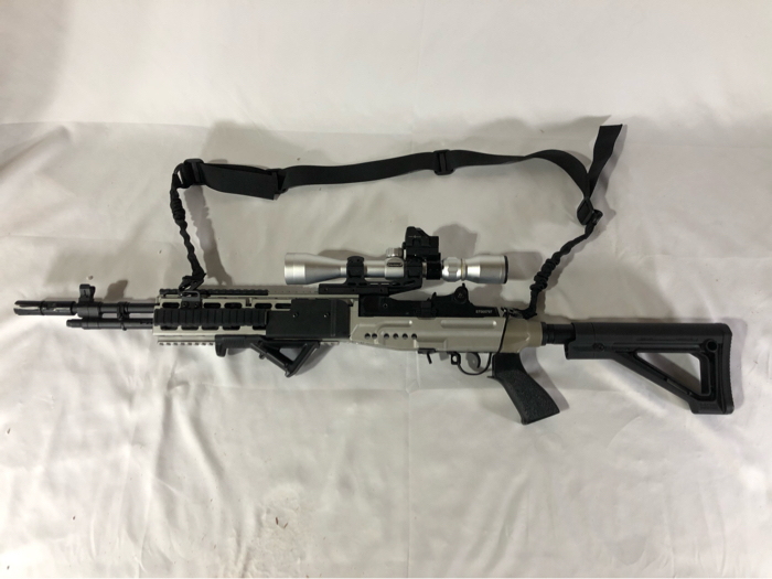 Never fielded in game. rhop and tight bore barrel has it chronoing at 405-410 with .2g bbs. Magpul stock, foregrip, scope/red dot combo, 5 midcaps and 1 highcap magazine. Rear wired to tamiya.