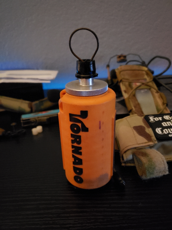 Old gen airsoft innovations tornado grenade. Cosmetically it's bretty roughed up, but it holds gas and functions perfectly. Price includes shipping and PayPal fees.