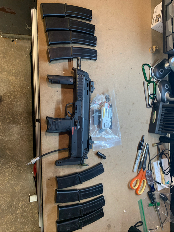 TM mp7 with bingo p* jack. Has 8 mid cap mags and a -14mm thread adapter.