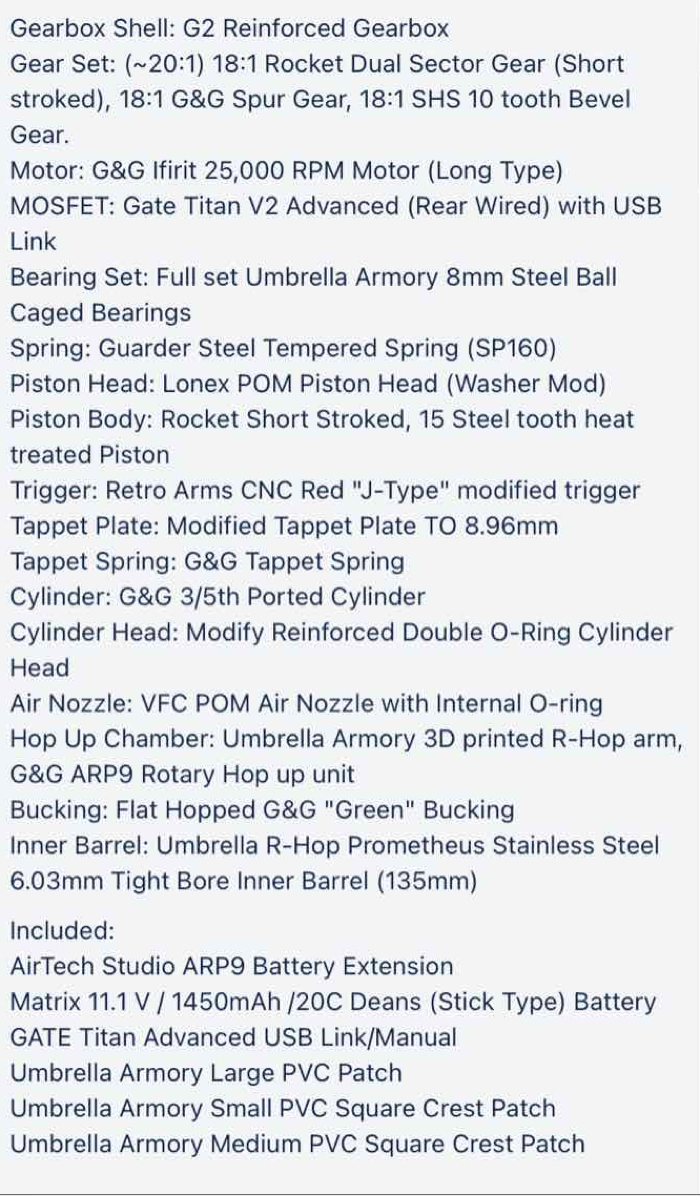 Up for sale is a like new condition Umbrella Armory ARP9. Parts list is in the second picture.