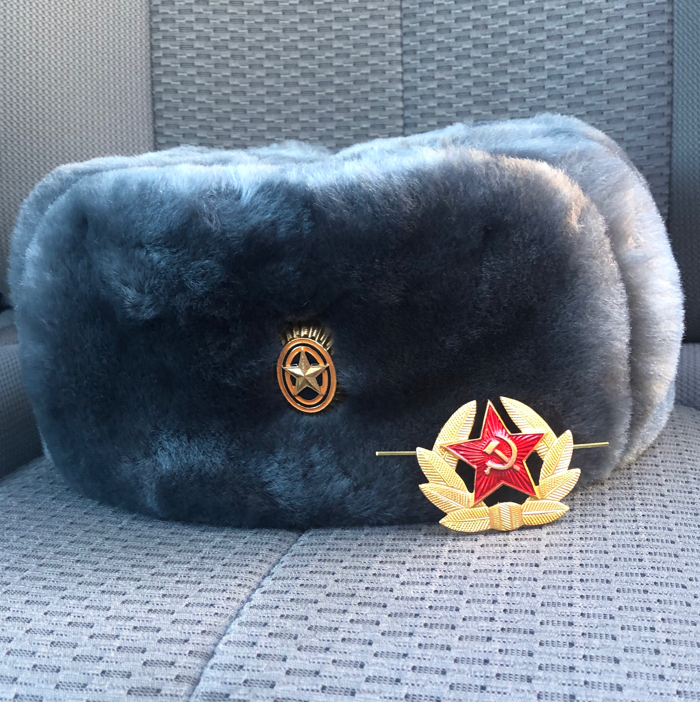 Came straight from the Airborne Academy in Ryazan Russia, is the preferred ushanka for airborne jumps in the academy. Comes with the Russian armed forces insignia ( attached ) and a Soviet army insignia.