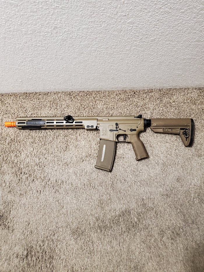 Price is shipped and feed. This is a refurbished AEG, as the trigger mosfet was bad and was removed and bypassed to prevent any future failures. Gearbox was reshimmed and compression was improved (ALSO has a quick spring change system!). Wired to deans. Externally there is some wear but nothing major. Works with no issues. Comes with a brand new BAMF Midcap mag. You save $55 off evike.com's already on sale price, and dont pay for shipping or fees! Thank you. Specs as fallows (No mosfet of course)