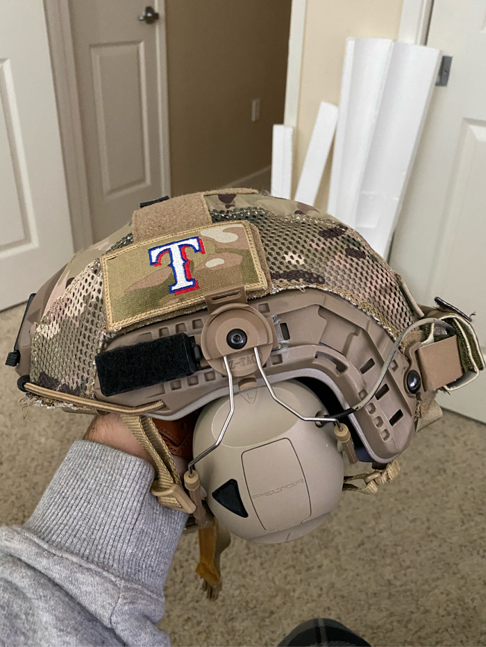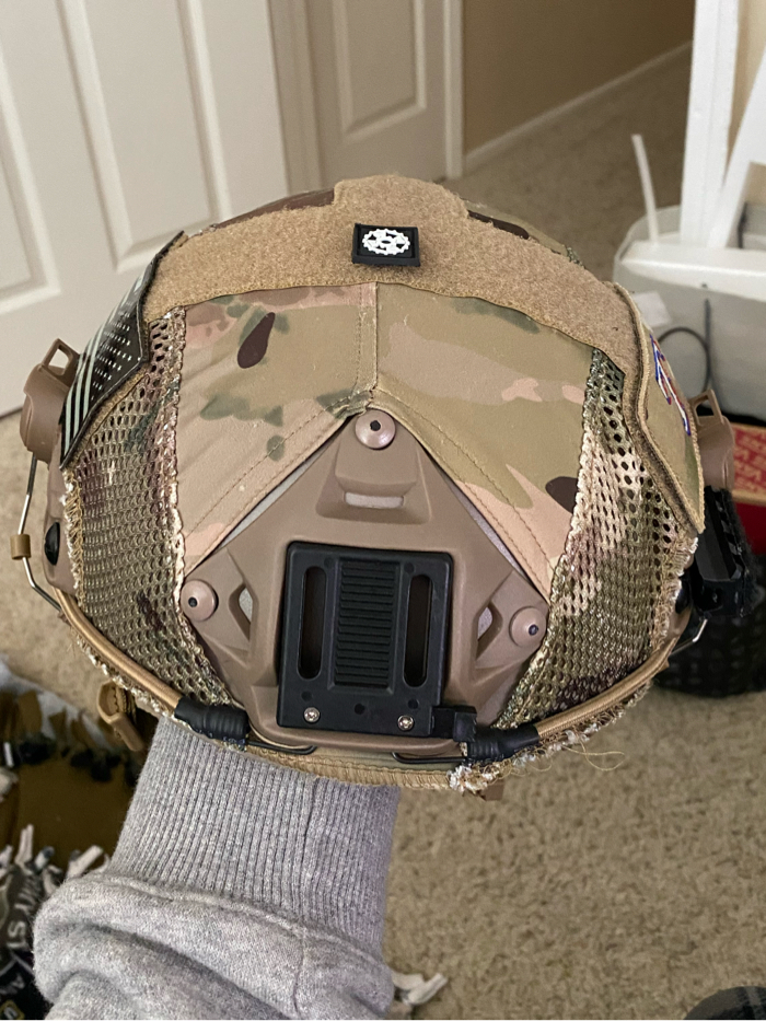 Fast Helmet with cover, rails, peltors, and weight bag. *PATCHES NOT INCLUDED*