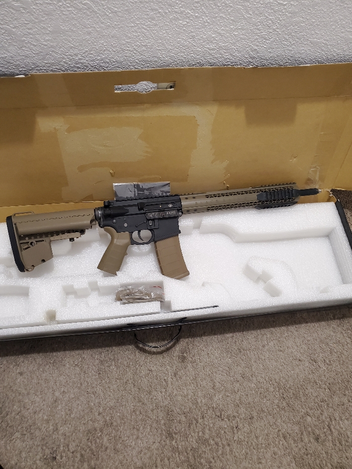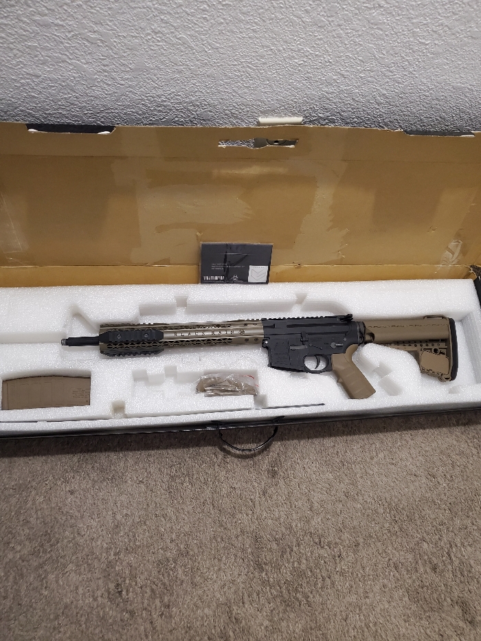 Price is shipped and feed. This is a lightly used King arms Black Rain Ordinance BRO-15 Carbine AEG in two tone black and tan. Only issue is that it is missing charging handle latch. Other than that in great condition with all original grip accessories, mag, etc... shoots absolutely fantastically. Out of stock and most likely discontinued. Original price on evike is $363. At $255 you save $108! Thanks for looking!