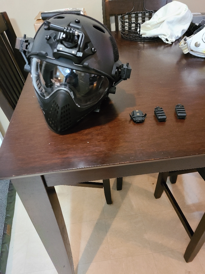 Also have a black helmet with a go pro mount and some rail mounts. The mask with the helmet IS NOT RATED FOR AIRSOFT !!!! I do recommend using the mask without more eyepro, on that note I have extra eyepro available aswell. 50$ obo shipping extra if needed.