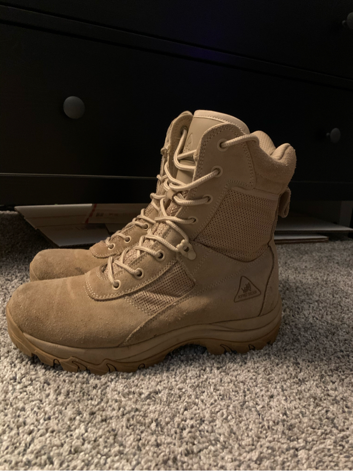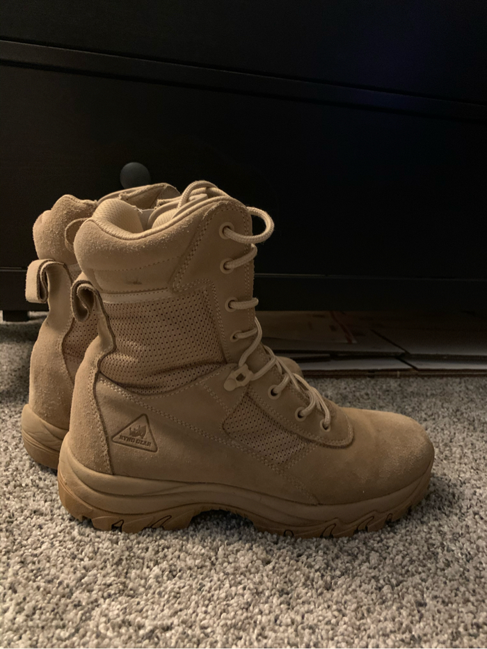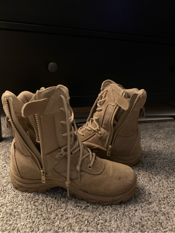Ryno Gear Tactical Combat Boots Tan/Coyote Brown. Coolmax lining. Zipper and velcro on side for easy on and off. Very comfortable boots. Lightly used, tons of life left! Men’s size 8, no original box. Message any questions. Shipped same or next day with USPS Priority. Looking for 50 plus shipping