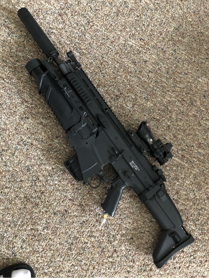 It comes with EGLM Grenade Laucher and one shell. One RS MI SCAR Rail Extension and 4 mags will be included. If my price is achieved I’ll include the scope as well.