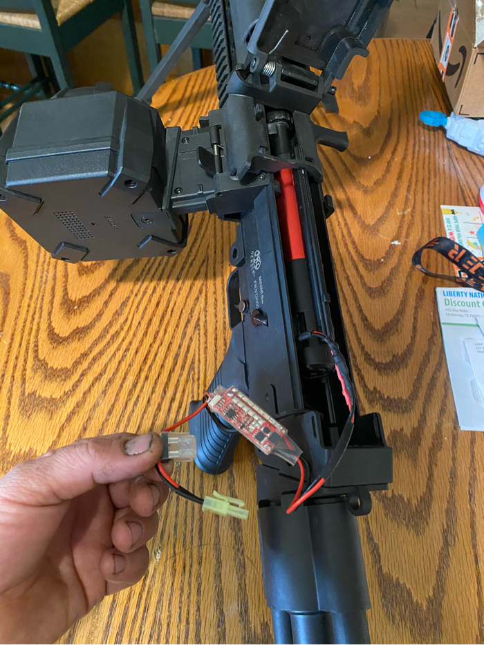 New m249 I added a selector switch and a g&g etu and trigger board it also comes with a drum mag and peq box. Hit me up payment through PayPal only. 250$
