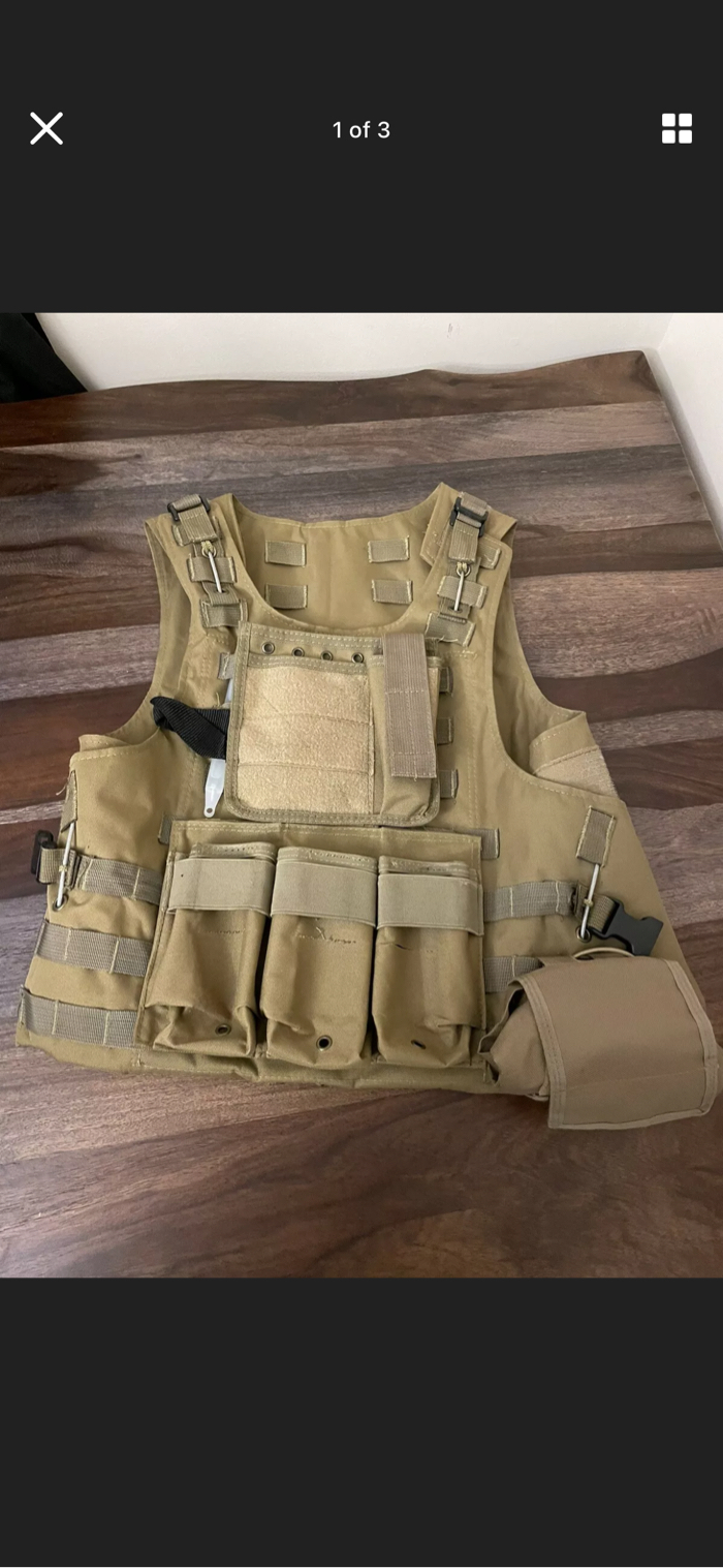 Comes with the plate carrier, admin pouch, modified mag pouch, dump pouch, and leg holster.