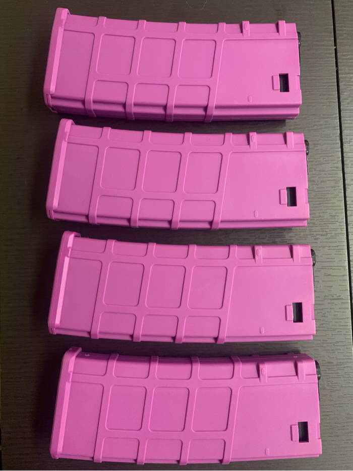 These magazines are awesome, 200 round capacity, fast feed, no fitment issues on any of my guns, I just don’t need them in purple. I use red and black ones mainly, but bought these for a load out I never wore. That being said, I haven’t ever used these, but I did take them out of the package, so I marked them used. Sold as a set of four magazines, fees and shipping on me. No trades! Thanks!