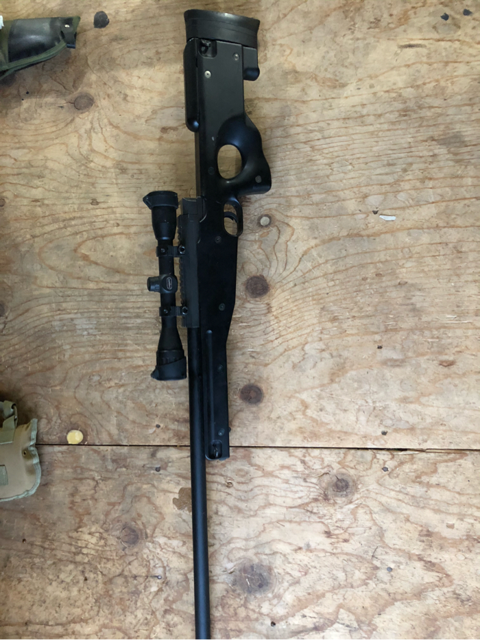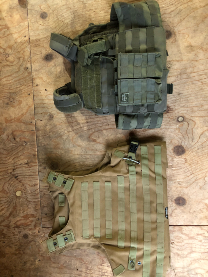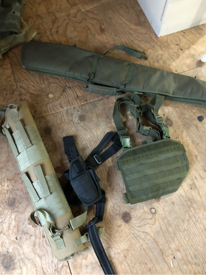 Shotgun scabbard, chest rig, drop leg holster, gun bag.