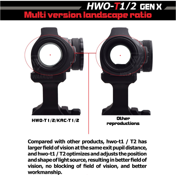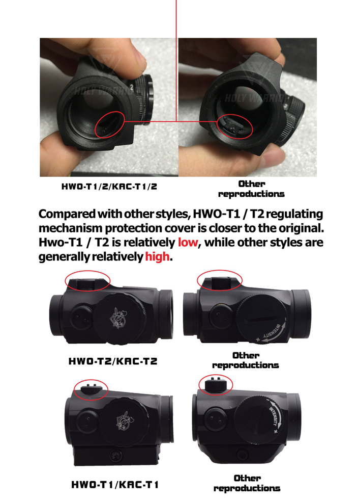 The 2021 Holy Warrior T2 has a bigger field of view(𝗽𝗶𝗰.𝟯), much clearer lens, more resistance to shock/recoil, and more detailed design(𝗽𝗶𝗰.𝟰) compared to other repro T2s.