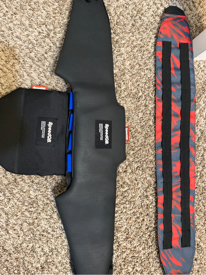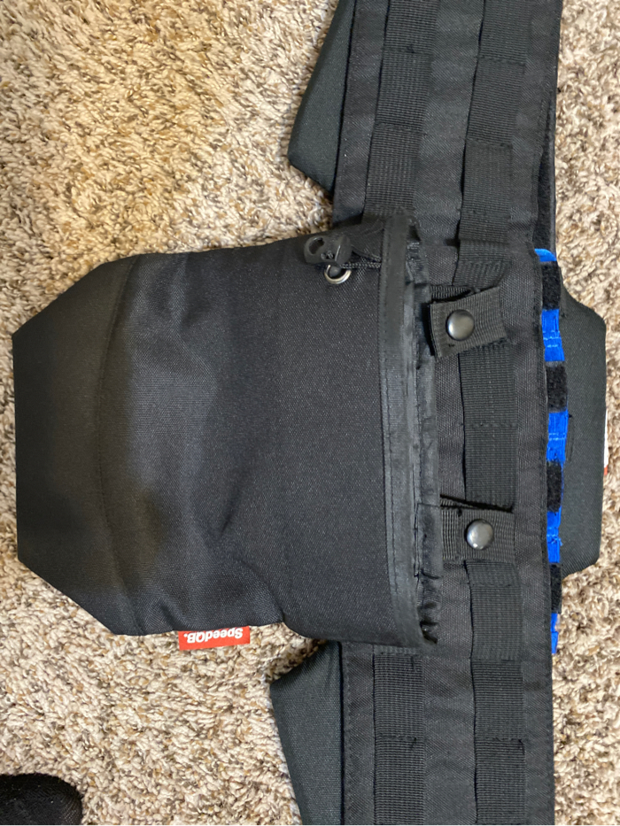 Speedqb battle belt only used 1 time comes with red tiger camo,size small/medium and also comes with blue pistol mags 4 pack and speedqb dump poach