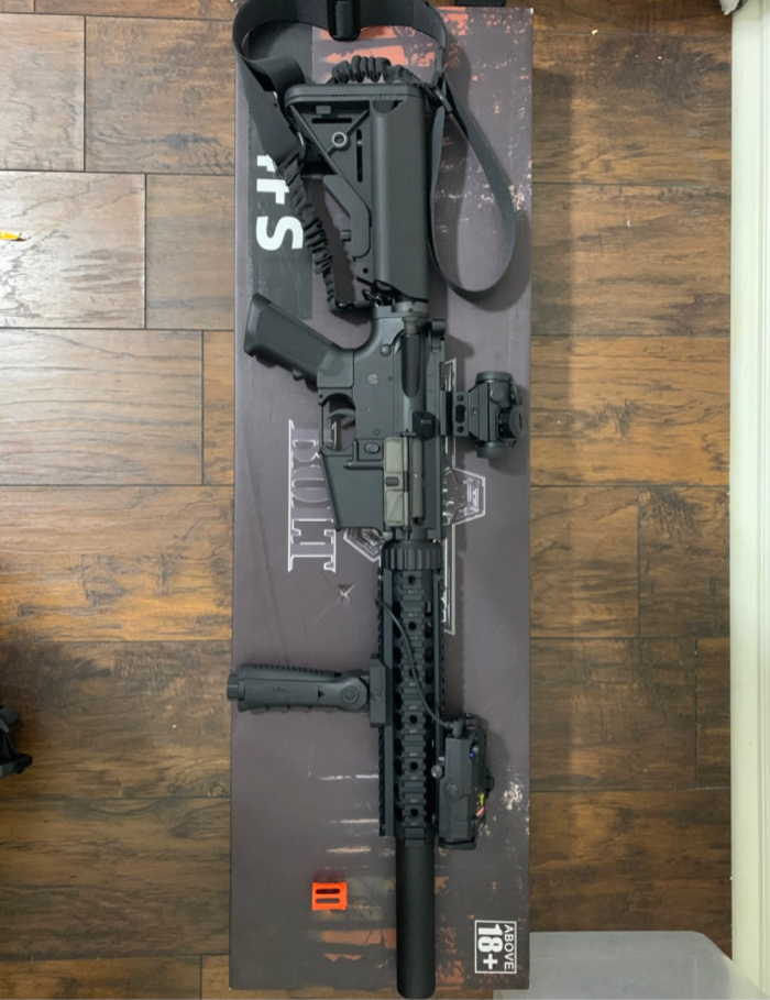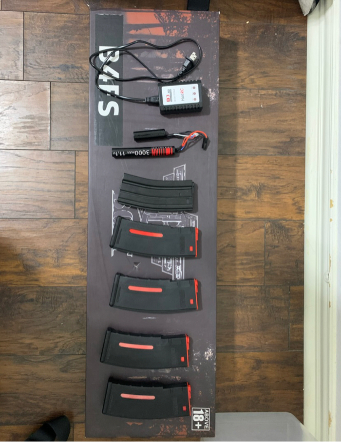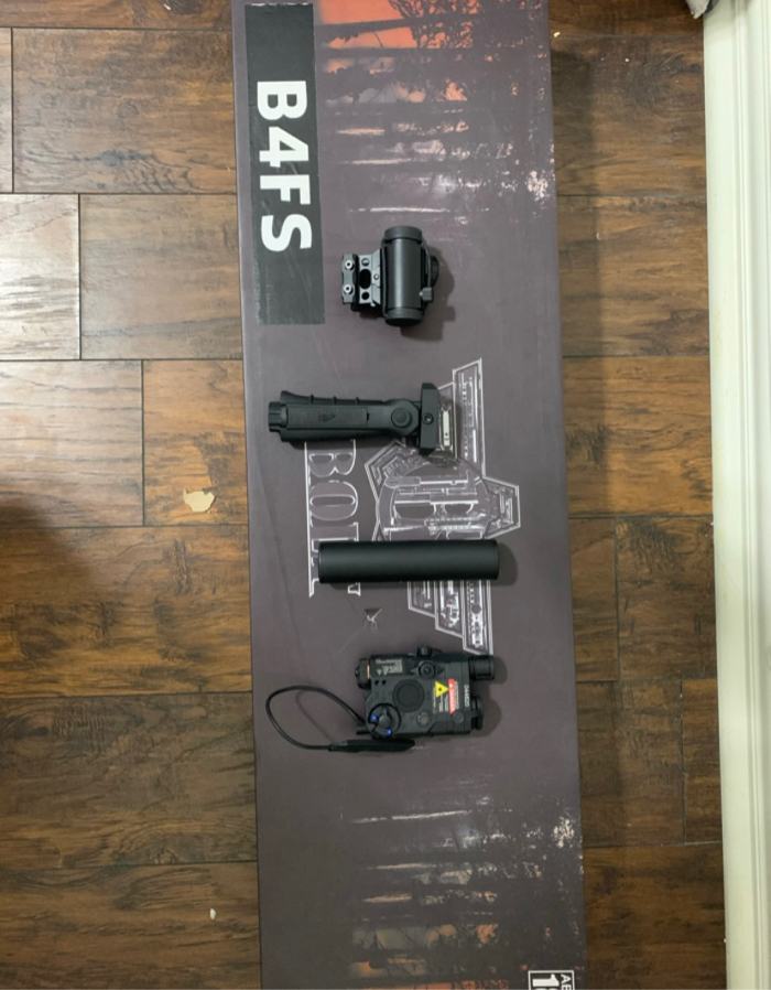 Looking to sell or trade the BOLT B4 FS B.R.S.S. AEG Recoil System. I had bought it from Evike and it had come on friday May 28, and I had decided that I wanted something shorter so I would be able to use it CQC. Nothing is wrong with it at all, it is brand new and is in perfect condition. I only test fired it and it was never fielded. I have also already removed the orange tip so you can add a mock silencer, tracer unit, or black flash hider if you wanted. I had to cut a bit of it off so it may look wierd but it is still usable. I just dont want to go through all the hastle to ship the return back to Evike. Message me for more details or about any questions. I would prefer local Texas DFW area only for trades and sale but will ship if buying. It will come with a PEQ box, red dot sight, 5 position vertical grip, mock silencer, one high cap magazine, 4 mid cap magazines, 11.1 V 3000mAh Titan Lipo battery, lipo battery charger, and a sling. Check out my other listing if you don't want the attachments along with it. Im also open to some offers so just message me about that or any questions you have. Thanks!