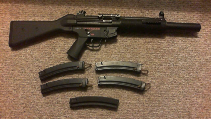 Selling my G&G MP5SD with Acetech Tracer, 4 polymer 90rd Midcaps and 1 highcap Mag.