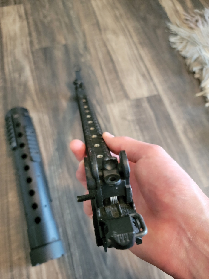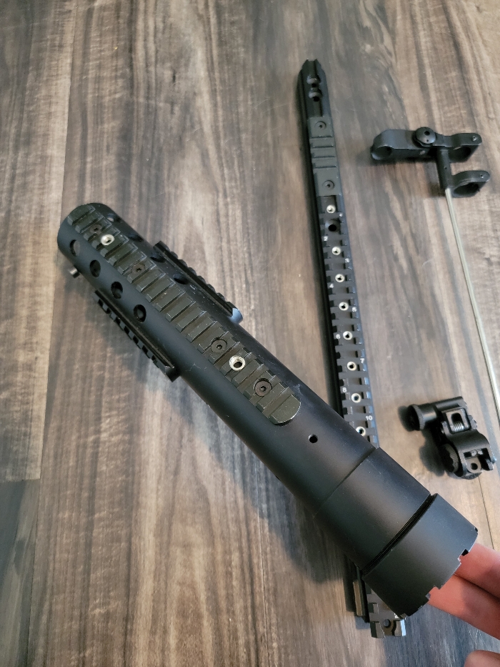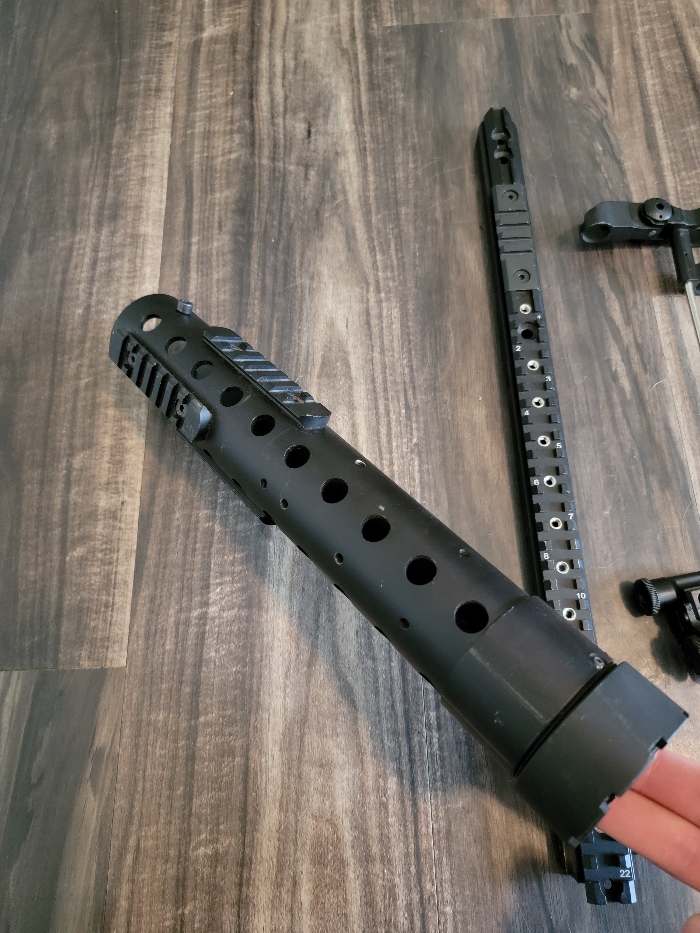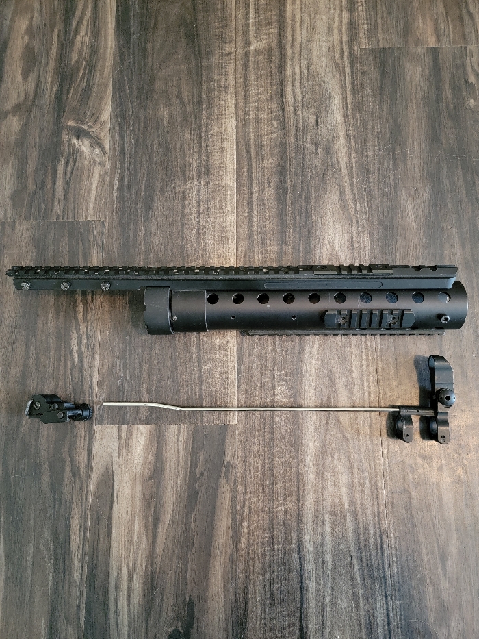 This is a 12.5" barrel shroud for an M4. It has a barrel nut, top rail and front/rear sights. It is made of metal and is a solid piece!