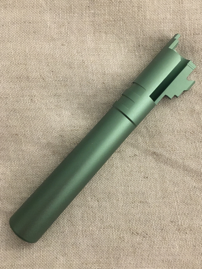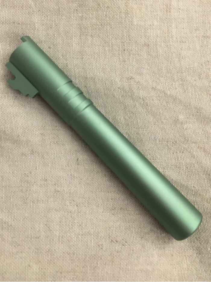Absolutely Gorgeous, Superbly well-made, solid Aluminum Hi-Capa Outer Barrel. Will fit Marui Hi Capa hop-ups/inner barrels and most others. This is a very cool, hard-to-produce shade of light green that I'd call "Mint Green." Almost like a pastel or Easter green. Threaded interior at the end of the barrel for an adaptor that can fit a tracer/suppressor/silencer/etc. This has literally never been used to fire a single round or even fitted to a gun. It will come brand new in the package from the factory. I can make a deal on it if you're buying something else and I'll ship them together. I can also deliver this in person if you're local.