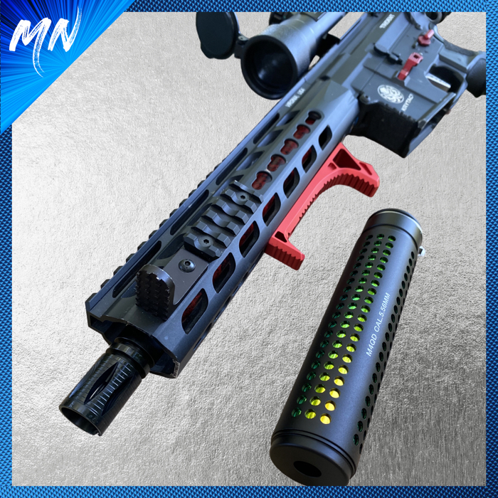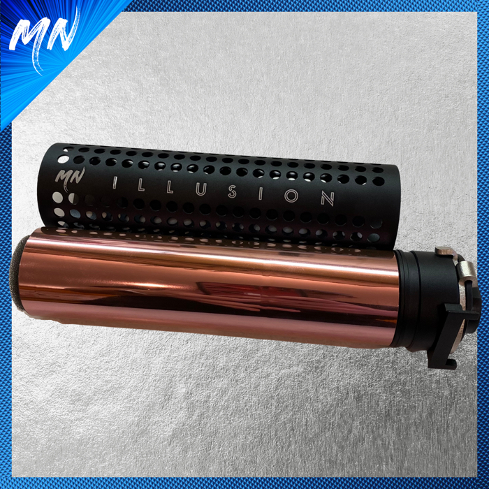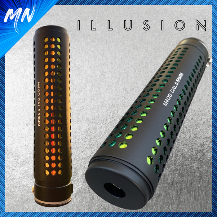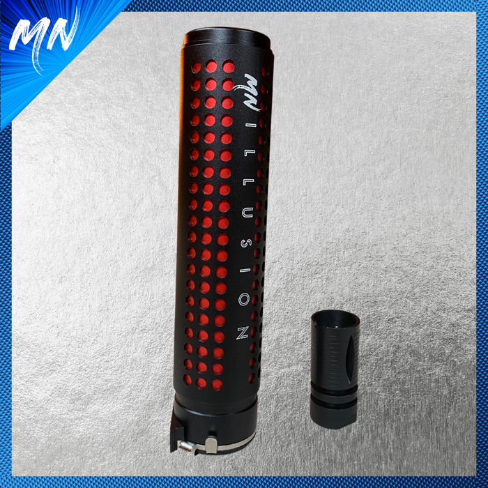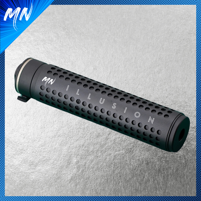 *Illusion and all other Minnesota Airsoft suppressors will not ship with any sound dampening devices inside of the suppressor such as foam; it will be included in the package separate. They are NOT intended for any other use than to be placed on the end of a toy airsoft gun and owners take full responsibility of affixing a federally mandated 1/4" orange color on the muzzle end of this product upon arrival. Owners take full responsibility by owning this product and by purchasing from Minnesota Airsoft LLC, you agree that you follow all airsoft saftey protocols such as wearing eye protection and never pointing the gun at anything you don’t indent to fire at. You also agree with all terms and conditions found at shopmnairsoft.com.