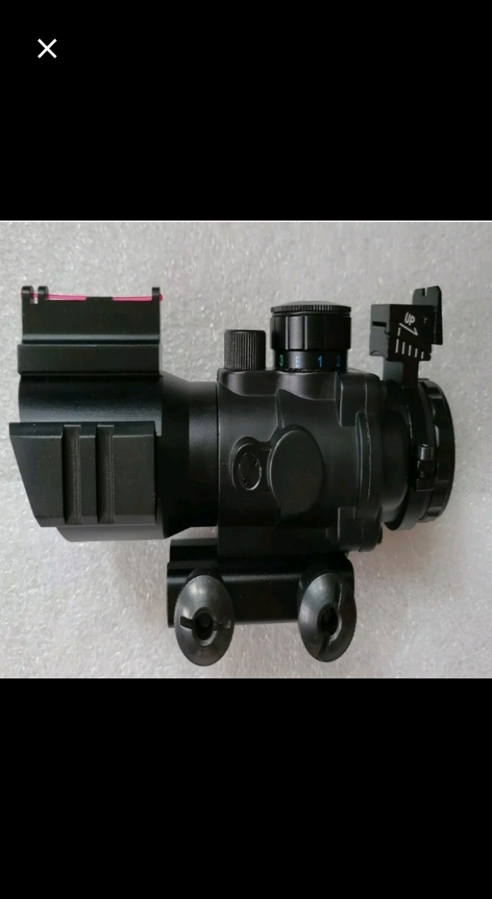 4x magnification with tri color illumination (bgr) well as laser etched reticle