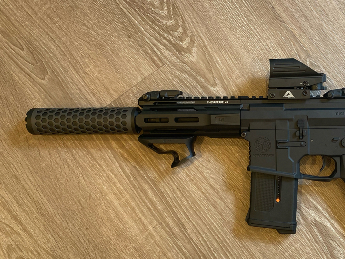 This is the 160mm version with power up inner barrel. 14mm Negative threading I believe. Very popular and well reviewed on Evike! Retails for $65 and is currently sold out and available for pre-order in 2022. GET YOURS NOW! Never fielded, only put on and shot in the backyard. Gave me about a 22fps jump on my Krytac Trident PDW! Only selling because I run an tracer now!