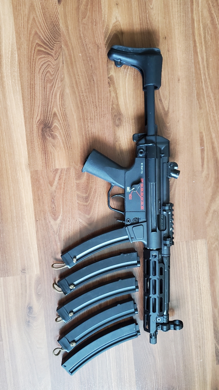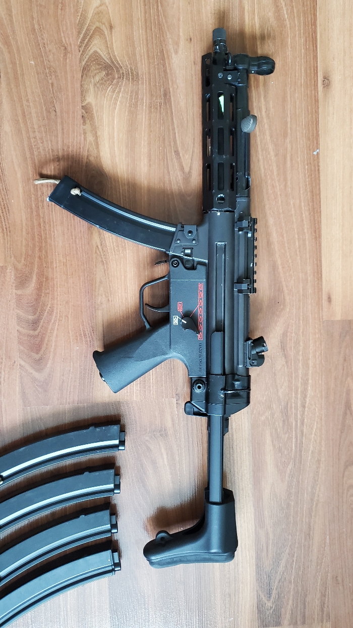 I have a g&g mp5 that I got in a trade that I don't really want anymore. It comes with a Midwest industry handguard and 5 magazines (4 plastic 1 metal).