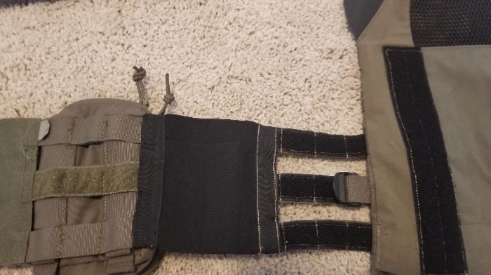 - 3 columns of molle that sit under your armpits have been removed and replaced with double layered elastic.