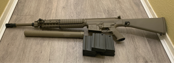 NO TRADES NEVER FIRED-ARES Full Metal SR25-M110 Airsoft AEG DMR (Color: Dark Earth) 5x magazine 1x Suppressor