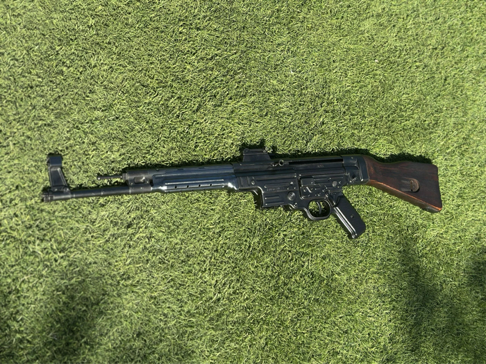 Selling my Shoei StG44 display model. These are handmade in Japan and are ideal for reenactors and collectors. Comes with the original box and has been upgraded with a German SSD (Sport Systeme Dittrich) StG44 handguard. No mag. Cycles and dry fires just like an authentic StG. Can be disassembled as such as well. Comes with the original box. Open to shipping CONUS. If you have any questions, please feel free to shoot me a message!