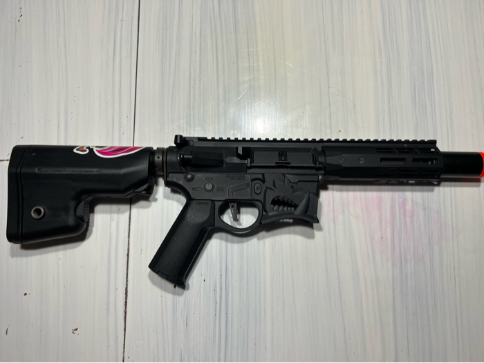 An Exclusive collaboration project between EMG and Sharps Bros. Firearm Design, the Warthog Airsoft receiver accurately depicts the fine detail and craftsmanship of the real AR15 firearms receiver. The stunning and fierce details of the Warthog really sets this apart from your average rifle and brings a whole new meaning to personal weapons customization. These fully featured rifles are made not only to look and feel amazing, but also to perform right out of the box. Frame is cracked as shown in the last picture, but the part is pretty cheap and easy to fix. Willing to work with price.