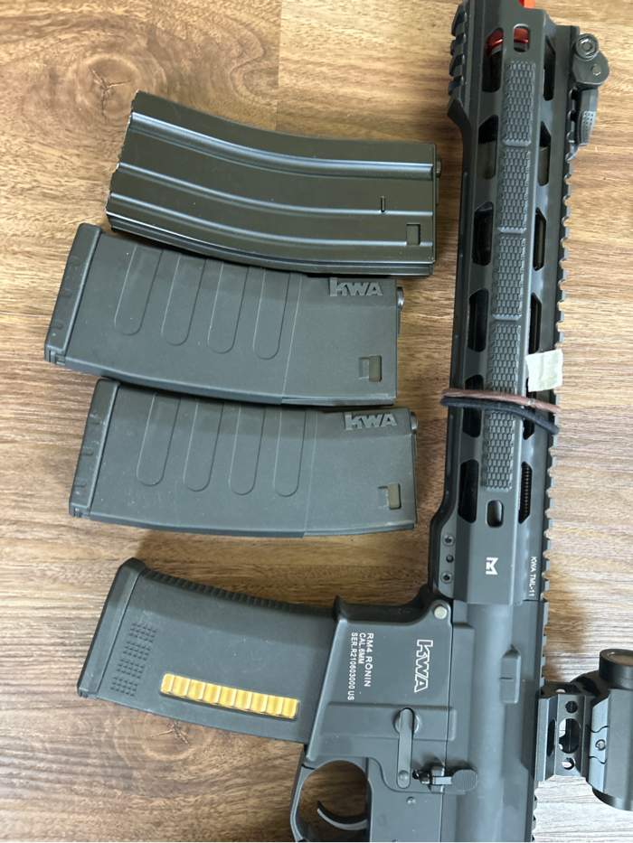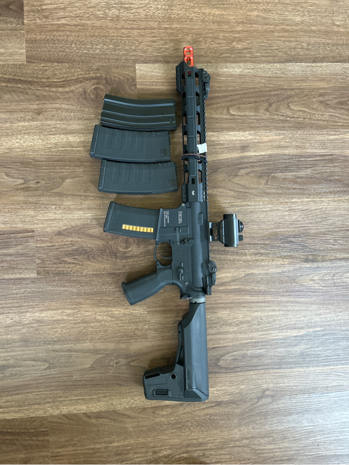 Basically brand new, never seen a field Comes with everything in the pictures gun + 3 mid cap and 1 high cap mag. Also comes with charger and battery
