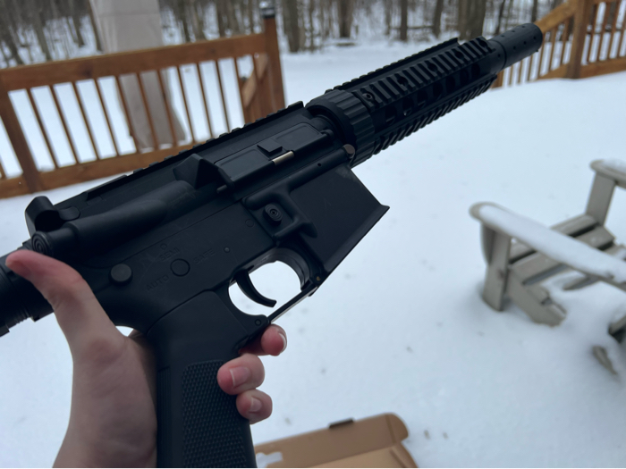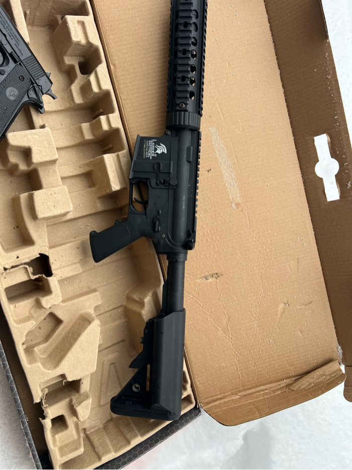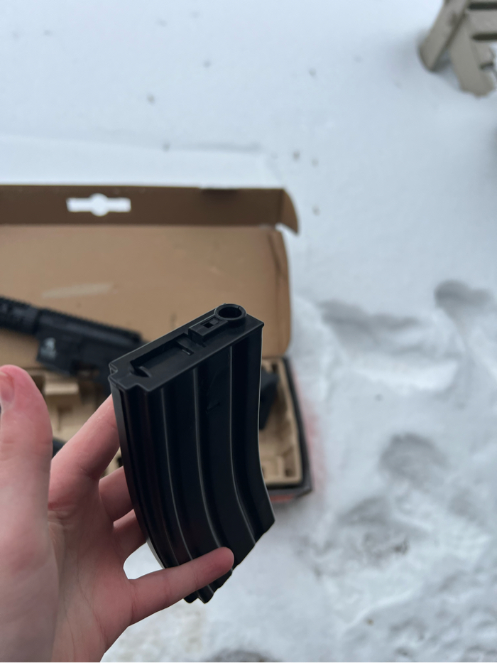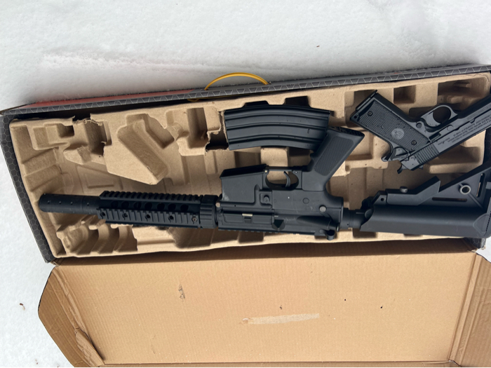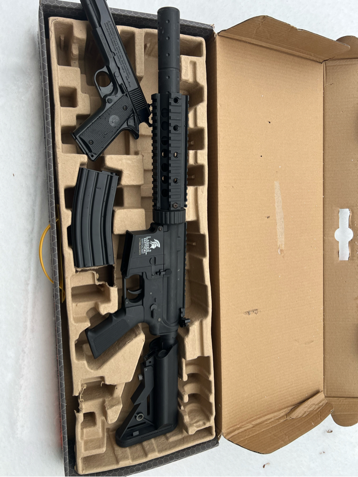 Its a Lancer Tactical Gen 2 AEG roughly 7500 rounds though it selling it to upgrade comes with battery, charger, spring pistol, and hi capacity magazine.