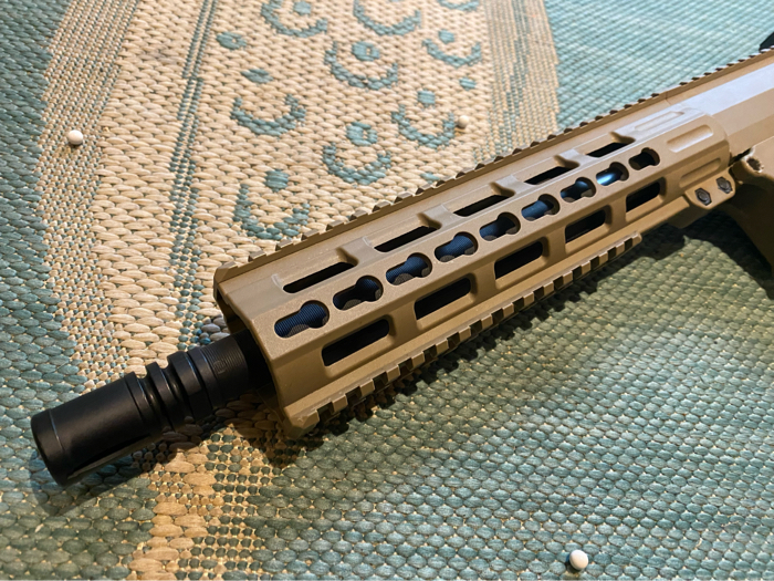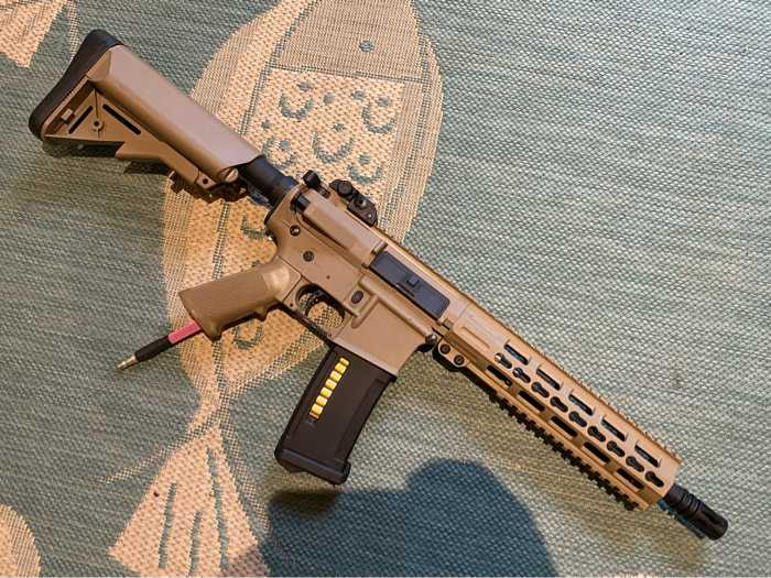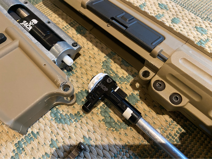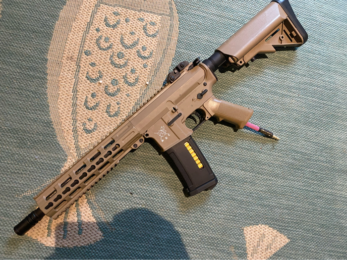 Selling my little tan sleeper Polarstar jack build. If you looked at it from the outside you’d like it’s just your average polymer m4 that you got at an evike clearance sale. But take a look at the internals and you’ll see this rifle means business. It has a tuned speed trigger so you can absolutely spam the trigger with no issues. The HopUp and barrel assembly ensure that your bbs are getting to your target as accurately as possible. And being powered by a Polarstar jack this rifle shoots 400fps with a .25g bb at 120FPS and shoots over 60 rounds per second on full auto. FPS ranged from 290-400. Great build for anyone looking for a lightweight powerful m4. Comes exactly as shown but without flash hider and magazine. Tracer unit, battery charger, battery, fcu, airtank, regulator, and line can be added for extra.