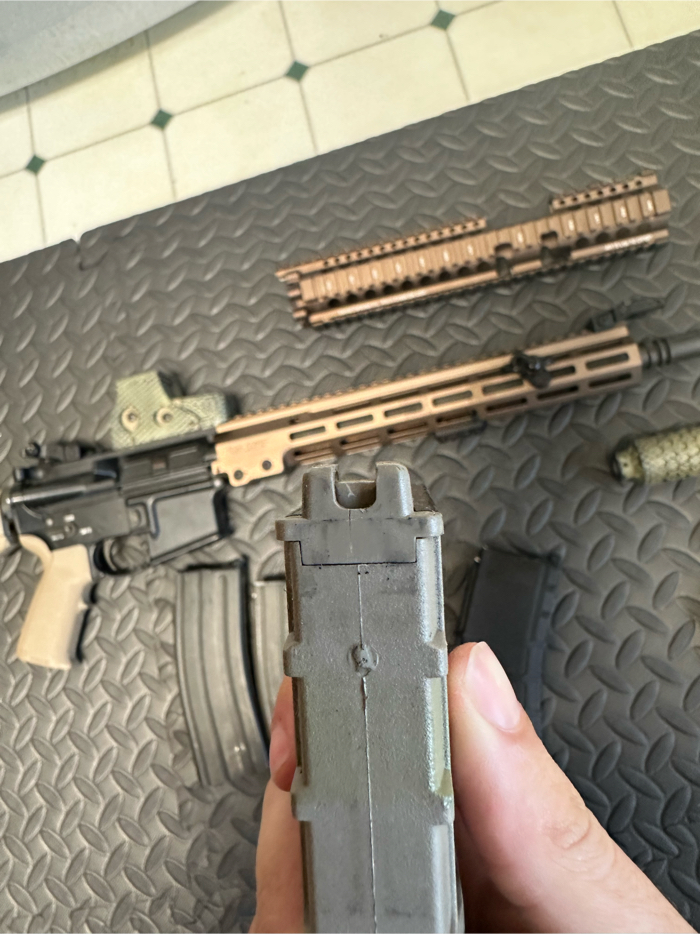 *No trades please* Hey everyone, im getting rid of this awesome gbb airsoft rifle. It comes with 5 mags, one of which is missing a baseplate and anothers feed lip is cracked (replacement included). Comes with speedloader and magazine adapter.