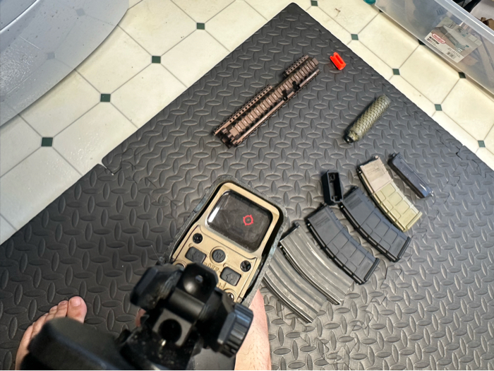 Also included is a BCM stock, decent eotech replica, and an angel custom HIVE mock suppressor that helps boost FPS, range, and accuracy. Will ship with orange tip and standard muzzle device.