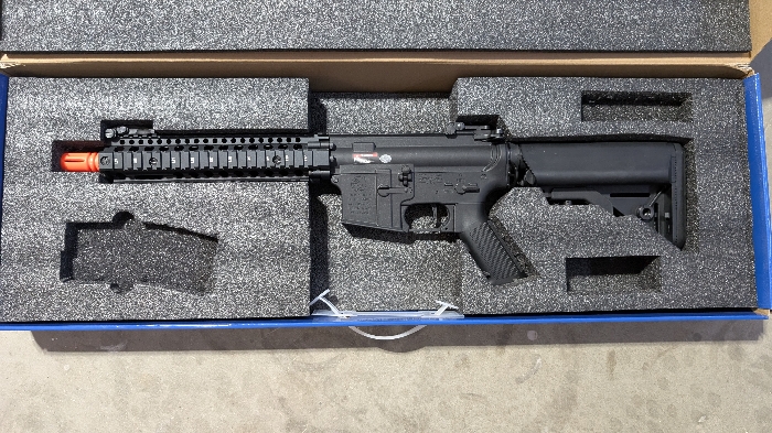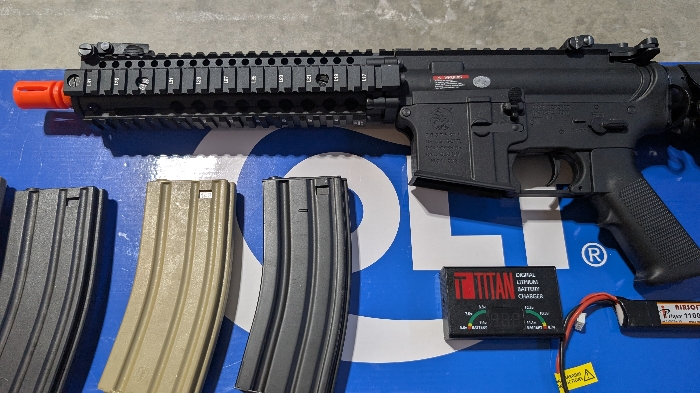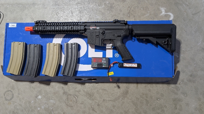brand new only test fired a few times. Never seen a field. LiPo battery, charger and 4 mags included
