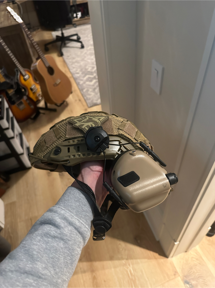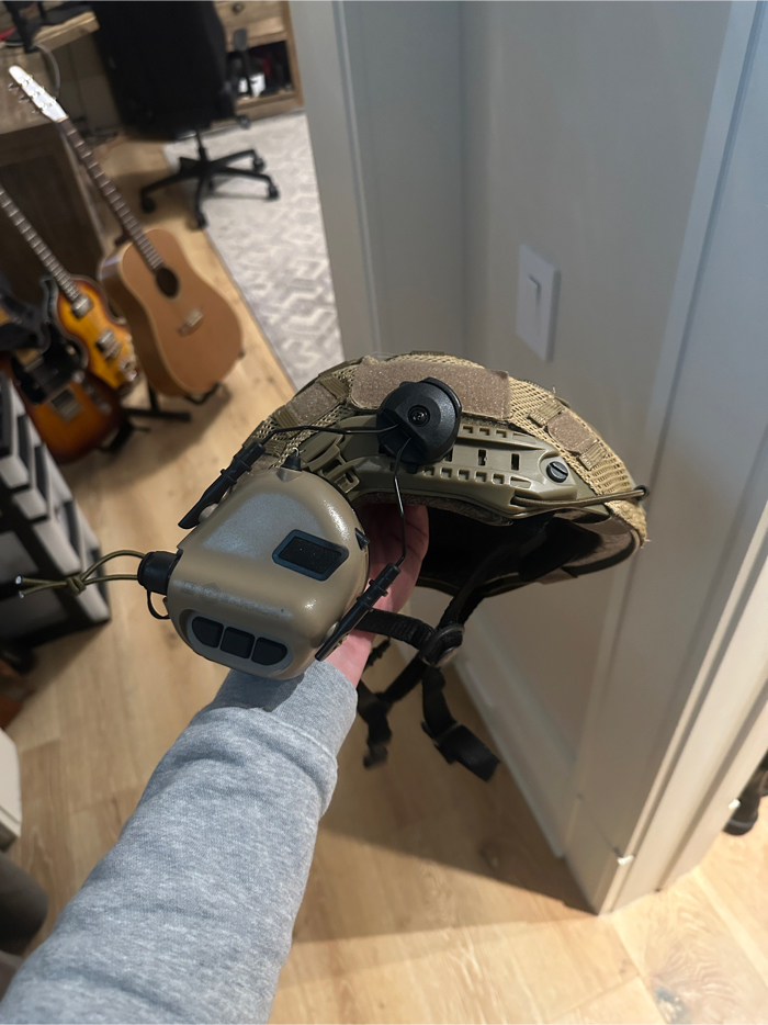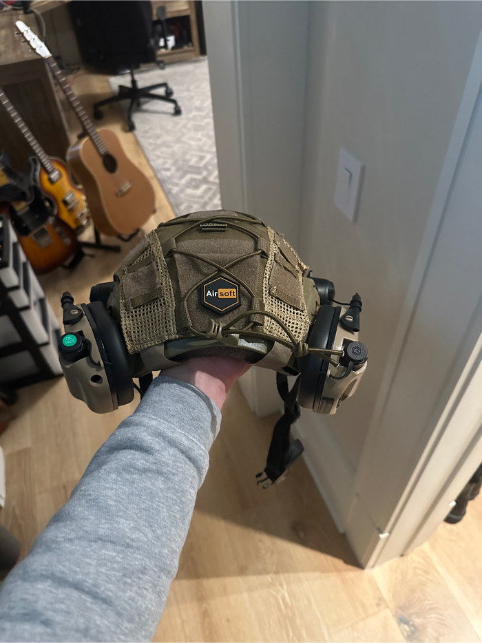 Helmet is basically new I ran it once and didn’t like it too much The earpro wires are cut off because someone yanked one of the cables out so i decided to cut the rest patches included will accept trades in houston area