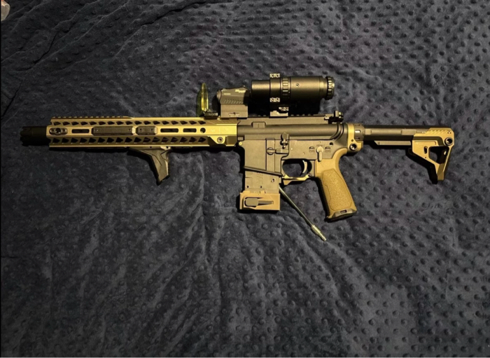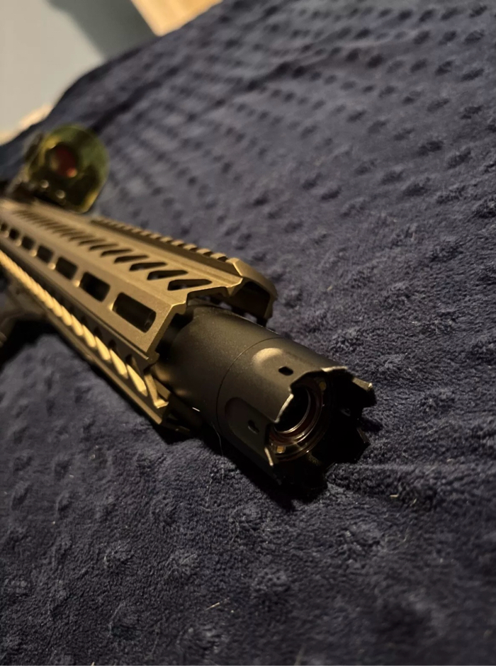 This is my custom built m4. Strike fitted, and with an authentic sig saur red dot. Tones of parts ask for a list if seriously interested. I will answer any questions you have, I’ve put tones of time and money into this gun and haven’t been able to use it as I’ve gotten into mtb (which is also expensive 😅) I am open to offers please no lowballing. Reasonable offer only.