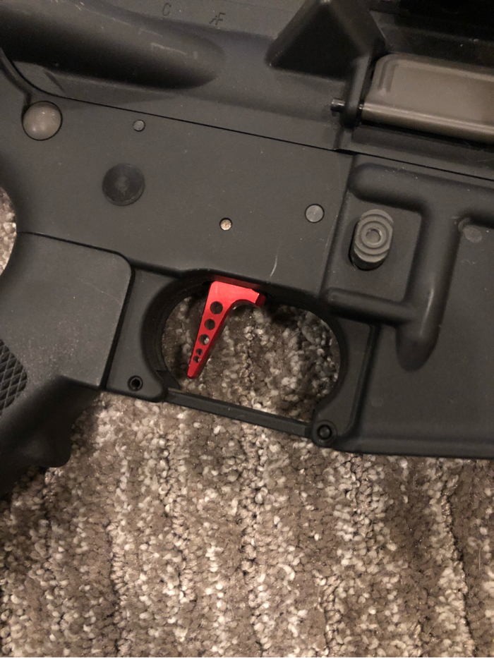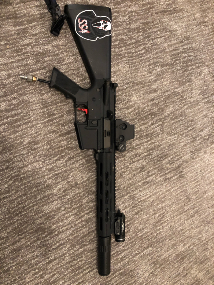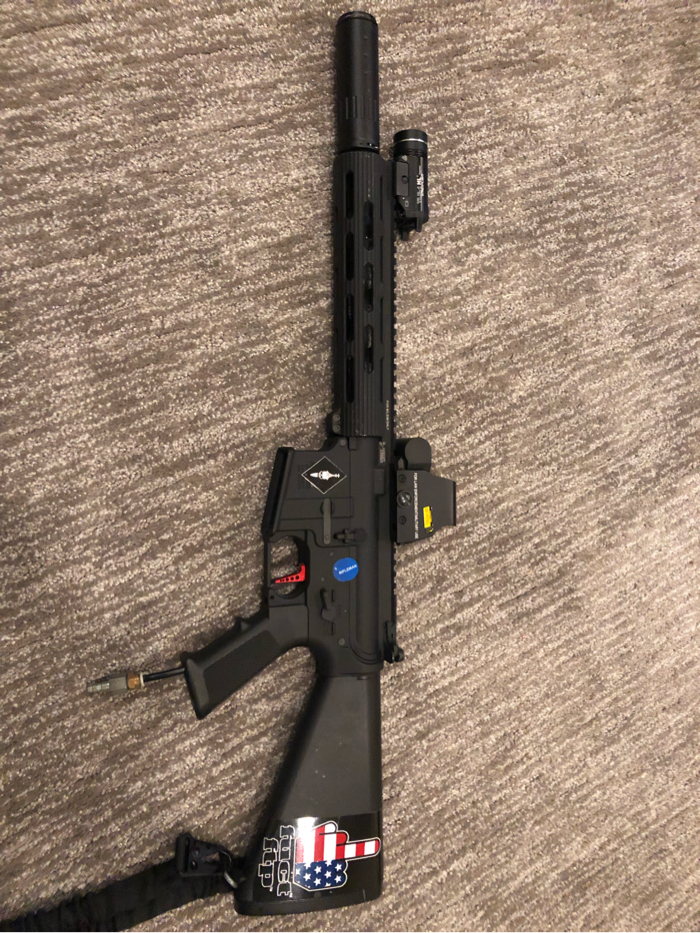 Fully custom m4 base polarstar jack. Jack is lubed and everything on the gun is ready to use. Stock is a m16 stubby fixed, upper is a airsoft junkiez with a Viking tactics rail with a foam filled suppressor with a flash hider underneath. DOES NOT COME WITH TLR. Fake Eotech is included even tho it’s cracked so keep that in mind. Hop up and barrel set up is a MAXX HopUp with a Prometheus barrel with a purple Prometheus bucking. FCU is already tunned for .25s but you can use whatever with you. Along side everything is a red speed trigger (already tunned) and the grip is just a EPM. Dust cover works and so does the racking mechanism. Like I said the gun is fully operational and ready for the field. It may need a clean tho because I haven’t used it in a long time but I just tested it to make sure it works. Message me with any questions/ concerns you have. Thank you!