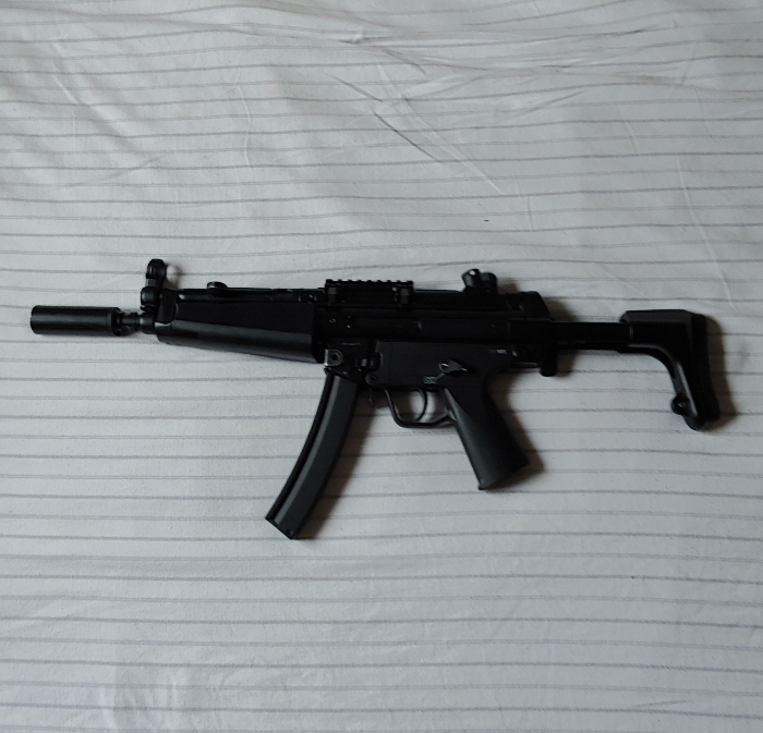 Classic MP5 looks, comes with 5 mags. Works perfectly.