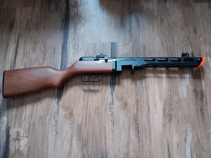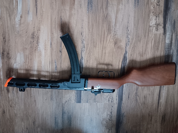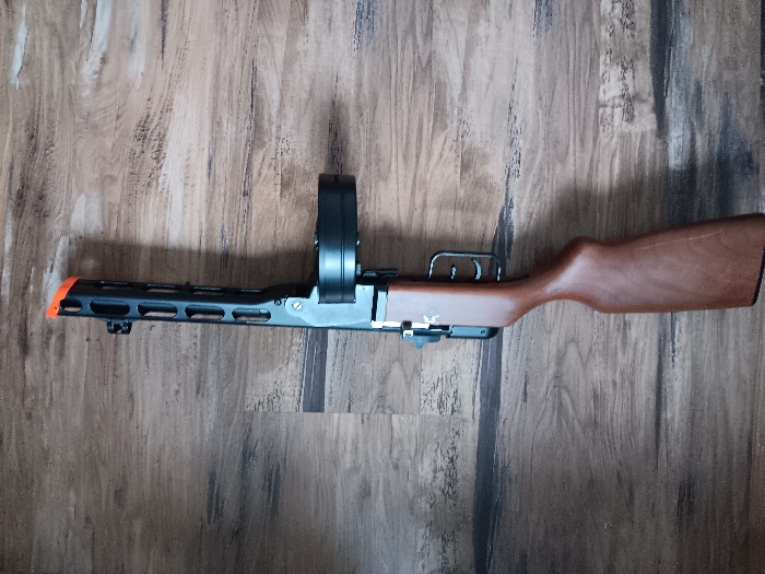 This is a PPSH 41, the Russian submachine gun during WW2, also known as the Commie-thommy. This model is an EBB, which means it functions like a notmal AEG but has an electric blowback action. I am selling it as I used it lightly and ended up not having time to play, so I am selling. The gun functions just as good as it did before I shot a mag. The EBB action still works, and the drum mag has some loading issues, but the stick mag works normally. They are Hi-Cap Magazines and the wheels on the bottom of both work. I have included 2 containers of 0.20 gram bb's and the charger and battery. I still have the manuals and original packaging. I am looking for a normal sale and probably won't go down in price at all; however, shoot me and offer, and we'll talk.
