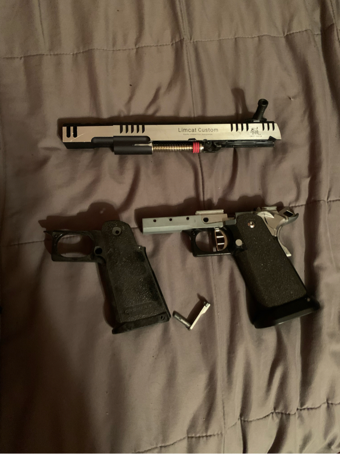 Tokyo Marui Hi Capa. Limcat phantera slide. Been out of Airsoft my loss your gain. I was very meticulous with all my guns. No trades getting out of sport. Have red dot site that screws in lower. Nine ball bucking. $50 race trigger that has screw to shorten or lengthen pull. Metal magwell. A lot of other things just been out of sport for 5 years and don’t remember everything. Willing to negotiate reasonable offers. Have many other extras just ask.