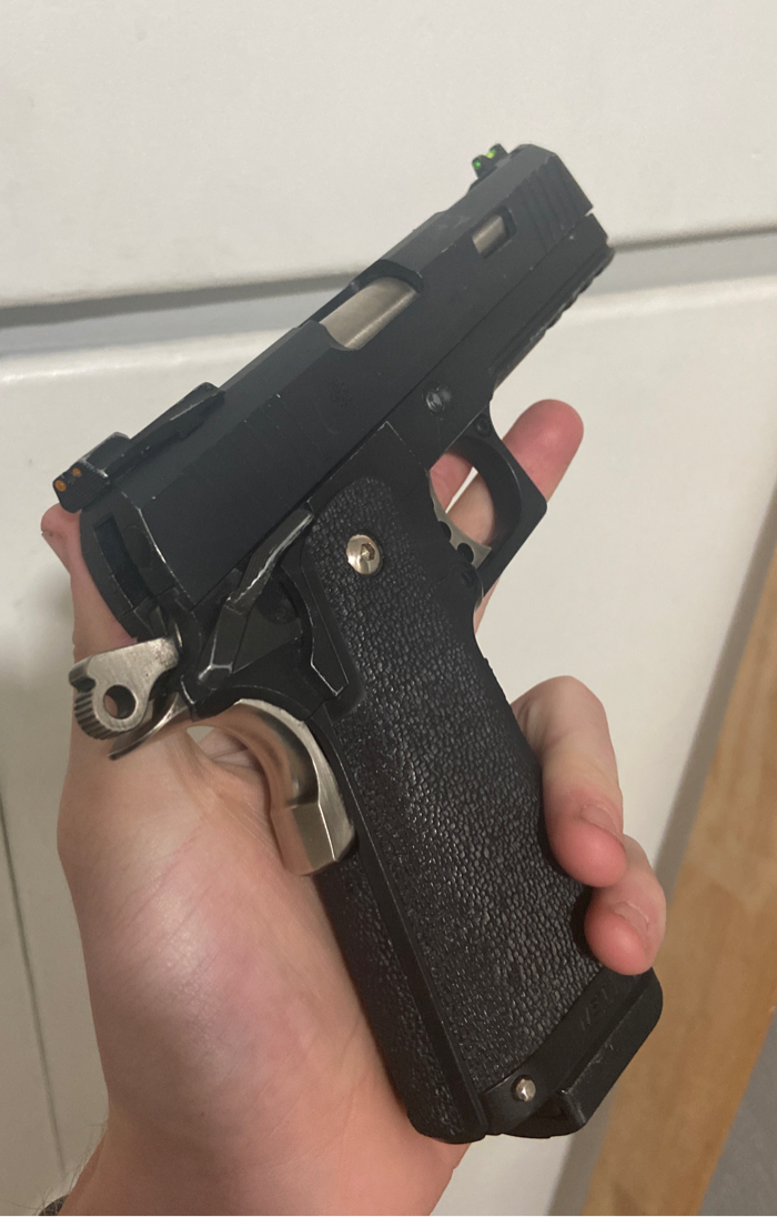 Used works very well and has an amazing blowback system. Green gas mag no leaks. Buyer pays shipping Dm with questions