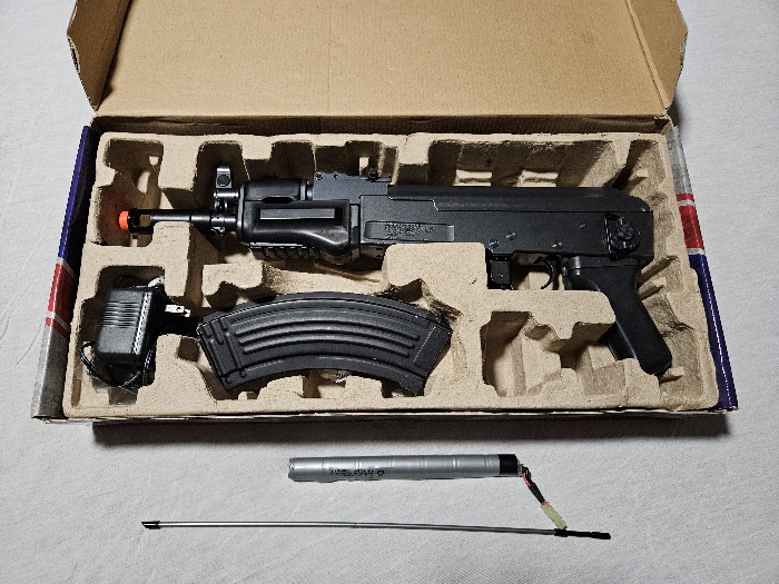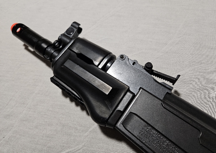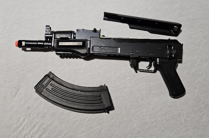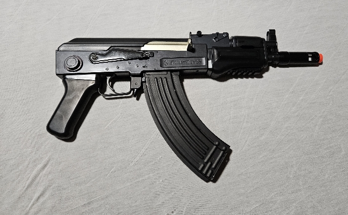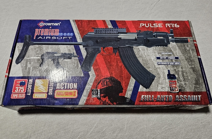 Crosman Pulse R76 electric airsoft rifle. Adjustible sights. No stock/top rail included. Minor wear and tear.