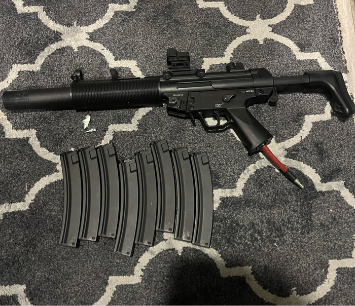 I’m selling a super sick fully licensed hk mp5 with 8 dogs of war mags and a stubby stock, shoots perfectly straight at far range and is dead silent, perfect for milsim events,and has a internal tracer for night games or indoor play overall super fun gun to shoot and play with