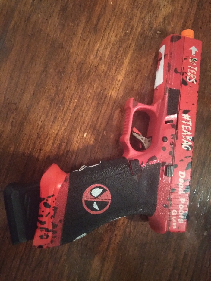 I am selling a Deadpool Glock 17 Gen 4 Pistol. New and great condition, Never fired it before. I am selling 15000 bbs in one box. The box also has never been opened before, I am selling a real Glock 19X Drop Leg Holster. Can also be used for airsoft purposes!!! Also fits the Glock 22. Lastly, I am selling a black one tigris POLICE airsoft tactical vest. Pretty nice, got the vest from Amazon and the vest comes with the military police patch. If you have any questions or concerns don't hesitate to contact me. Thank you for your time and business.